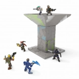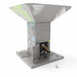 Futuristická šedá štruktúra s geometrickými panelmi, ktorú možno jednoducho postaviť, ponúka interaktívne prostredie pre figúrky.