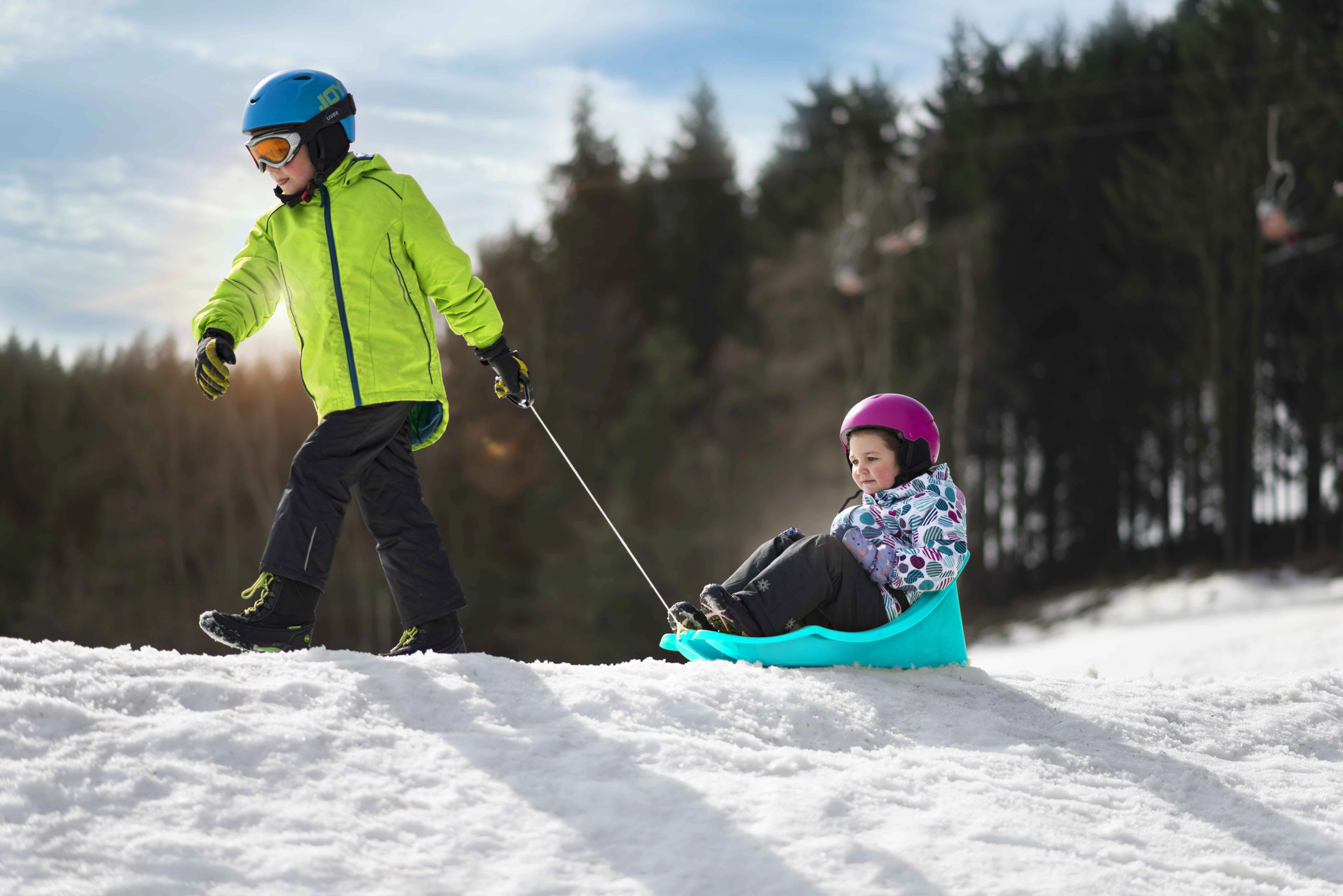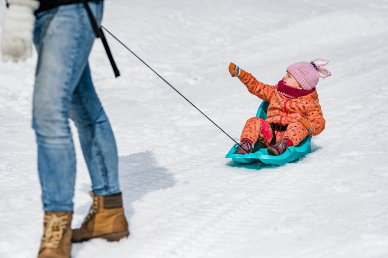 Praktické ťažné lano s madlom umožní rodičom ľahko ťahať boby po snehu aj na dlhších trasách.