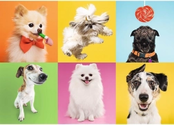 Objavte šesť rôznych psov s rôznymi výrazmi a pózami, ktoré sú rozložené do samostatných segmentov a vytvárajú dohromady úžasný vizuálny celok.
