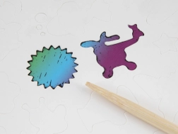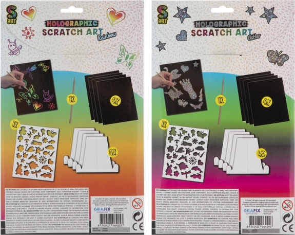 Poškrabaním čierneho povrchu objavíte žiarivé dúhové farby, ktoré dodajú vašim obrázkom jedinečný vzhľad.