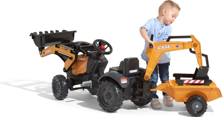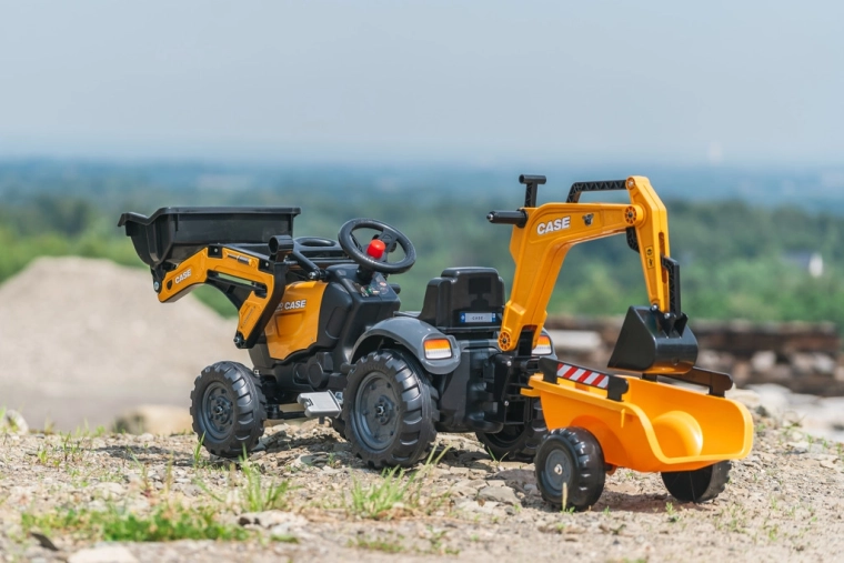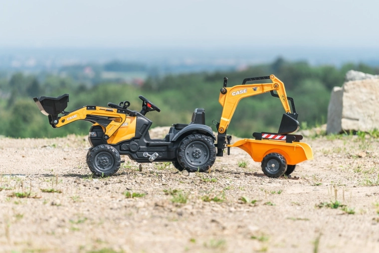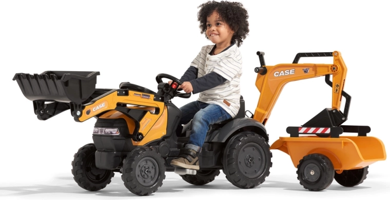 Tento realistický šliapací traktor CASE je dokonalým parťákom pre vonkajšie hry, záhradu aj pieskovisko. Deti nadchne pohyblivá predná lyžica na nakladanie piesku či hliny a zadný bager ovládaný z otočného sedadla. Odpojiteľný vozík ľahko odvezie všetky „poklady“ zo stavby. Vďaka stabilnej konštrukcii a odolnému plastu je pripravený na každodenné dobrodružstvá.