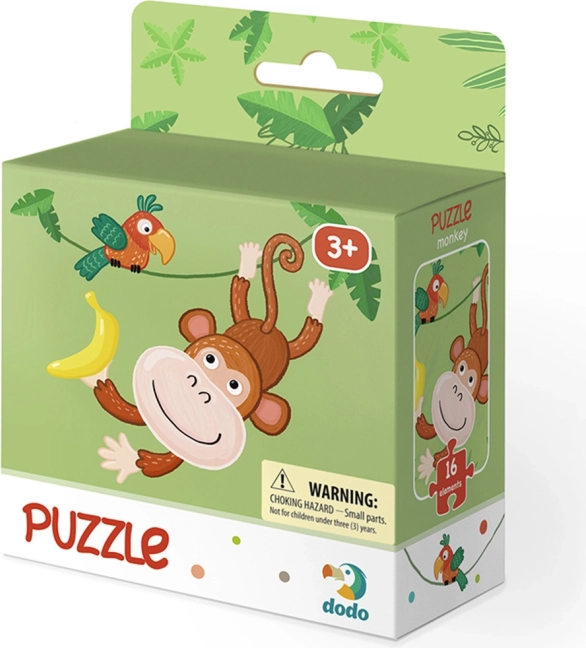 Roztomilé detské puzzle s motívom opičky prináša zábavu aj rozvoj jemnej motoriky. Vďaka 16 veľkým dielikom je ideálne pre malé deti a ponúka kompaktný rozmer zloženého obrázka cca 22 × 22 cm. Jednoduché skladanie, krásna ilustrácia a kvalitné spracovanie potešia každého malého skladateľa.