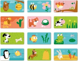 Detské puzzle „Čo jedia zvieratká?“ učí najmenších správne priraďovať zvieratká k ich obľúbeným pochúťkam. Vďaka jednoduchému systému 12 dvojíc si deti precvičia pozorovanie, sústredenie a koordináciu oko–ruka a zároveň sa zábavnou formou učia nové pojmy.