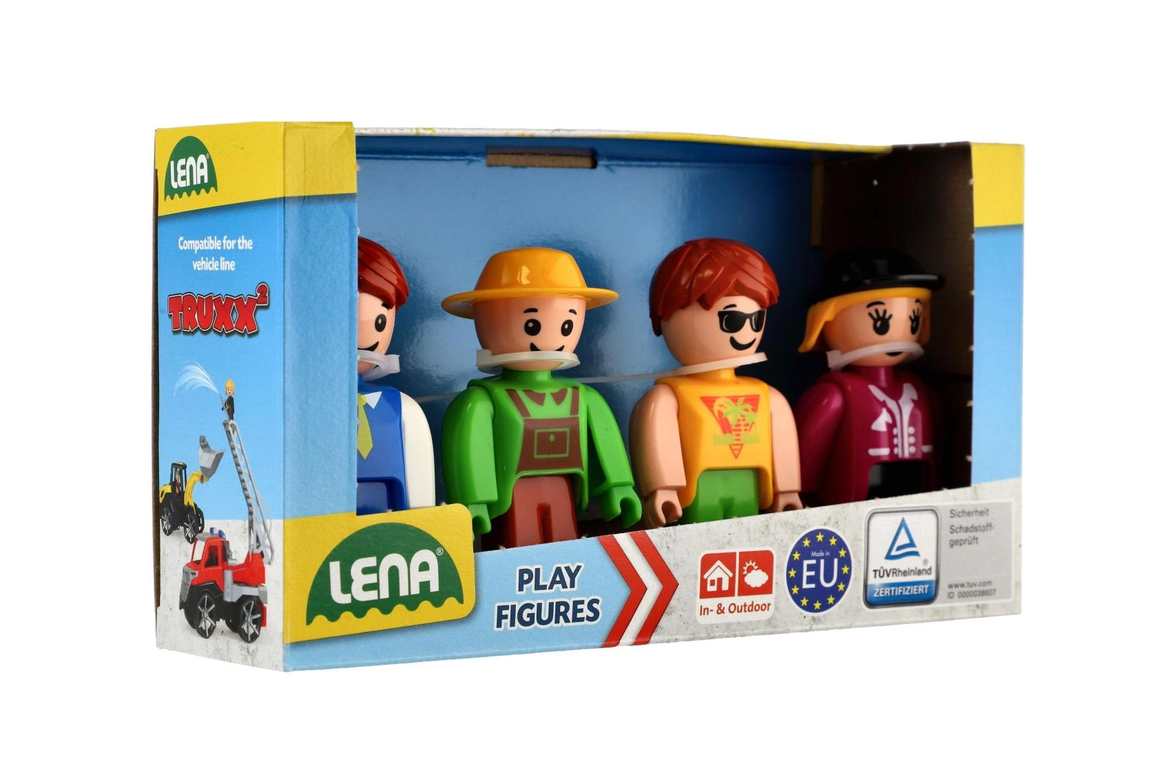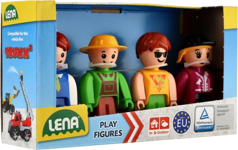 Objavte zábavu so štvoricou figúrok LENA: vodič autobusu, farmár, dievča a jazdkyňa. Figúrky sú kompatibilné s vozidlami TRUXX, vhodné na hru vo vnútri aj vonku a určené pre deti od 12 mesiacov. Kvalitná európska výroba a certifikácia TÜV zaručujú bezpečnosť a odolnosť.