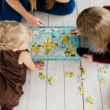 Tieto vzdelávacie puzzle so zvieratami z celého sveta ponúkajú zábavnú formu učenia pre deti od 5 rokov. Vďaka výrazným farbám a prehľadným ilustráciám si deti ľahko zapamätajú jednotlivé druhy a ich rozšírenie. Po zložení obrázka môžu pokračovať hrou Nájdi a hľadaj, ktorá rozvíja orientáciu a znalosti geografie.