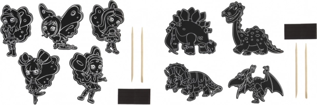 Táto zábavná a kreatívna sada prináša hodiny tvorenia pre malých aj veľkých. Stačí jemne zoškrabať vrchnú vrstvu a odhaliť farebné motívy víl alebo dinosaurov. Hotové výtvory ľahko pripevníte na chladničku či iný kovový povrch a ozdobíte tak domov originálnymi magnetmi.