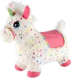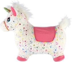 Roztomilé plyšové hopsadlo v tvare jednorožca poteší najmenšie deti od 12 mesiacov. Vďaka ergonomickému tvaru, výške sedla 23 cm a mäkkému odnímateľnému poťahu je skákanie bezpečné a pohodlné. Jednorožec po stlačení tlačidla vydáva zábavné zvuky, súčasťou je aj pumpička a batérie pre okamžitú zábavu.
