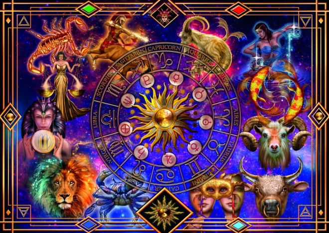 Farebná kompozícia predstavuje všetky znamenia zverokruhu v mystickej kozmickej palete – ideálne pre fanúšikov astrológie.