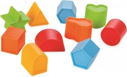 Sada farebných geometrických dielikov podporuje rozlišovanie tvarov a farieb a učí deti riešiť jednoduché úlohy vkladaním do správnych otvorov.