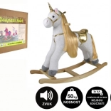 Objavte kúzlo hravého hojdania s dizajnovým bielo‑zlatým jednorožcom, ktorý je nielen krásny na pohľad, ale aj plný interaktívnej zábavy. Po stlačení jedného uška jednorožec erdží a pohybuje chvostíkom, po stlačení druhého uška sa ozve klopkanie podkov pri kluse a chvostík opäť zavlaje. Hračka pomáha deťom prirodzene trénovať rovnováhu a motoriku a podporuje fantáziu.
