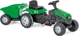 Zelený šliapací traktor Farm s odpojiteľným valníkom, klaksónom a nastaviteľným sedadlom. Z vysoko odolného a kvalitného plastu. Veľkosť 143×51×51 cm. Vek 3+. Všetky traktory sú testované na nosnosť 50 kg – podľa požiadaviek európskych noriem.
