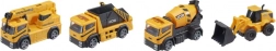 Sada obsahuje štyri rôzne stavebné vozy: miešačku, nákladné auto, bagr a auto s žeriavom, každé s realistickými detailmi a funkciami na zvýšenie herného zážitku.