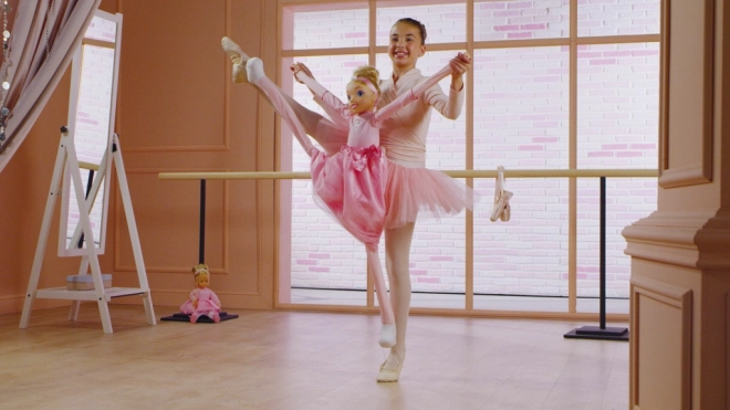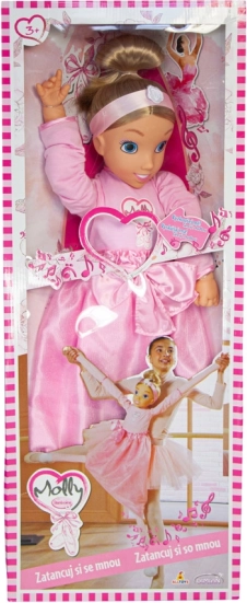 Hračka podporuje deti v tréningu baletu vďaka možnosti interakcie s figúrkou v tanečnom štúdiu. Dievča na obrázku aj baletka Molly demonštrujú skutočné baletné pozície.