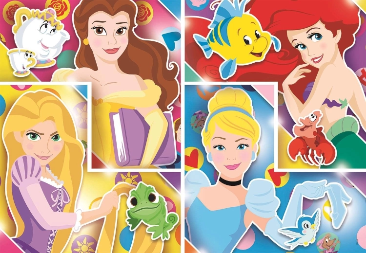 Clementoni Puzzle Disney Princezné: S priateľmi (104 dielikov)Toto detské puzzle zo série SuperColor Collection predstavuje motív obľúbených princezien. Edícia SuperColor Collection je navrhnutá špeciálne pre deti, pomáha rozvíjať manuálnu zručnosť a schopnosť pozorovania.