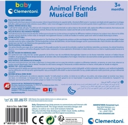 Hudobná lopta BABY CLEMENTONI je navrhnutá tak, aby deti prirodzene motivovala k objavovaniu. Zvieracie zvuky a chytľavé melódie podnecujú sluchové vnímanie, zatiaľ čo mäkké materiály s rôznymi textúrami a farebné pútka rozvíjajú hmat a jemnú motoriku. Vďaka kompaktnej veľkosti Ø 15 cm sa lopta dobre drží aj najmenším deťom.