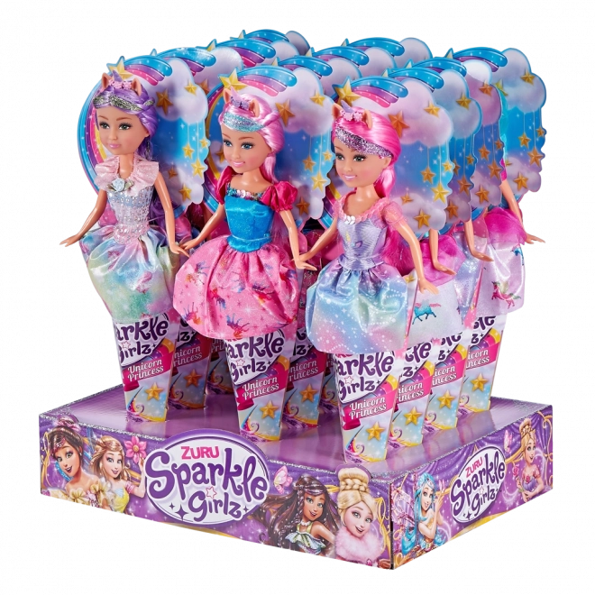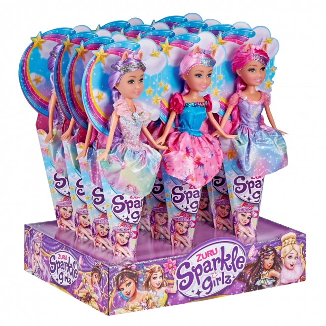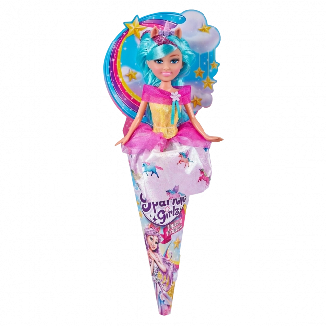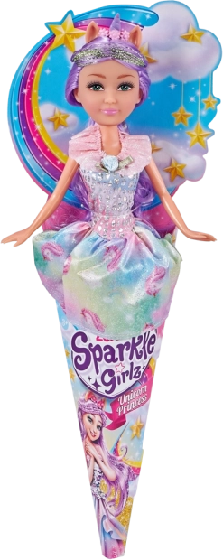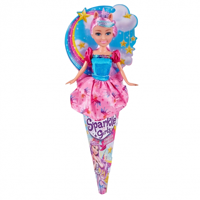 Kúzelná bábika víla jednorožec z kolekcie SPARKLE GIRLZ poteší každú malú princeznú. Má výšku 28 cm, nosí trblietavé šaty a je ukrytá v roztomilom darčekovom balení v kornútku – ideálna na fantazijné hry a ako rozprávkový darček.