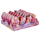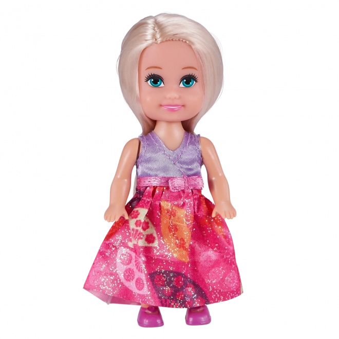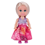 Bábika má pestrofarebné, trblietavé šatôčky s kvetinovými detailmi, ktoré rozžiaria každú detskú zbierku a podporia fantazijné hry.