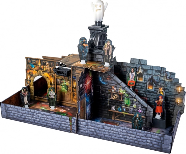 Obsah balenia zahŕňa všetko, čo potrebujete k okamžitému hraniu: 1 herná plocha, 1 návod, 1 svietiaci duch, 8 figúrok a množstvo tematických doplnkov pre väčšiu zábavnosť.