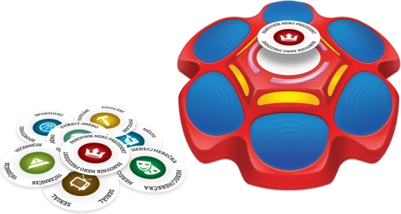 - Prvý hráč, ktorý stlačí svoje tlačidlo a dá správnu odpoveď, vyhráva kartu.