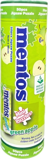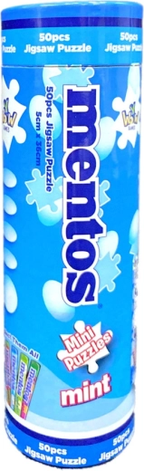 Krabička v dizajne obľúbených cukríkov MENTOS. Puzzle má 50 dielikov a krabička aj samotné puzzle sú vyrobené z recyklovateľných materiálov. Výrobok je vhodný pre deti od 6 rokov.