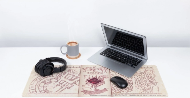 Vdýchnite svojmu pracovnému stolu čarodejnícku atmosféru. Priestranná podložka s licencovaným motívom Pobertovho plánika chráni dosku stola, spríjemňuje ovládanie myši a dodá vášmu setupu originálny vzhľad. Vďaka gumovej základni pevne drží na mieste, takže sa pri písaní ani hraní nebude neposlušne posúvať.