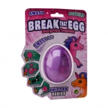 Fialová varianta vajca, ktorá sa rozbíja, aby odhalila prekvapujúcu hračku vnútri.