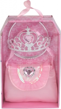 Táto nežná módna sada premení každodennú hru na rozprávkové dobrodružstvo. Korunka dodá každému prevleku kráľovský lesk a kabelka pojme všetky malé poklady, ktoré sú na výprave do ríše fantázie potrebné.
