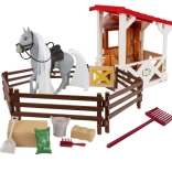 - Stajňa, ohrada, figúrka koníka, krmivo a nástroje na starostlivosť