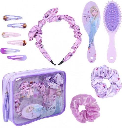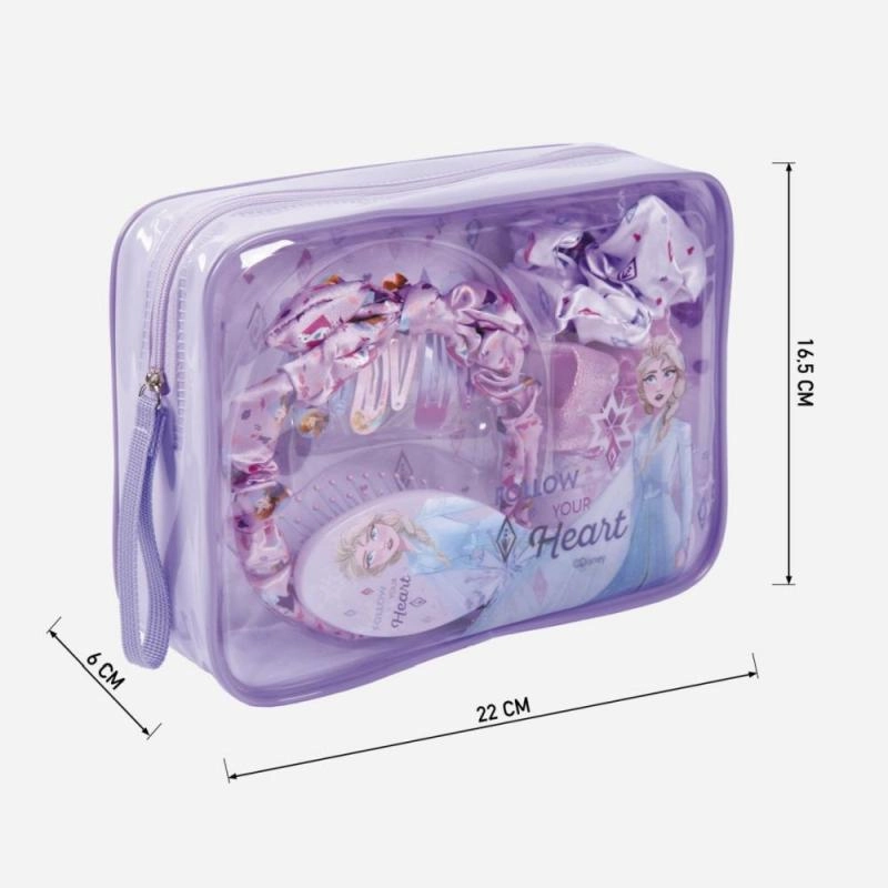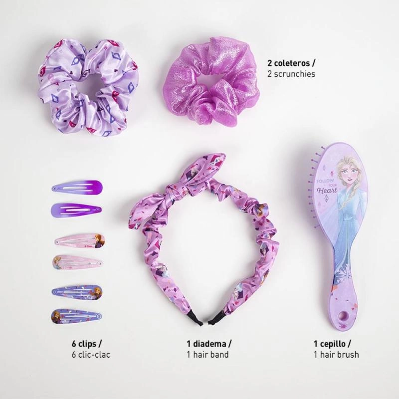 Roztomilá darčeková sada doplnkov do vlasov s motívom FROZEN II poteší každú malú parádnicu. Obsahuje 10 praktických kúskov: 6 kovových sponiek s aplikáciou, čelenku s mašľou, kefu a 2 saténové gumičky. Všetko je uložené v praktickej taštičke na zips – ideálne na doma aj na cesty. Vhodné pre deti od 6 rokov.