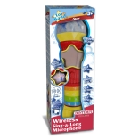 Zábavný bezdrôtový mikrofón premení každé vystúpenie na show. Ponúka svetelné efekty, podsvietené zrkadielko, 2 prednastavené pesničky, 4 rytmy, 8 melódií a 3 zvukové efekty. Pre pohodlné používanie nechýba automatické vypínanie.