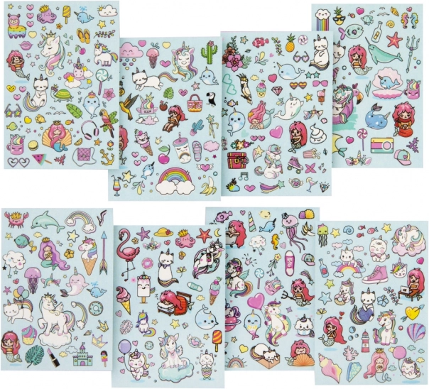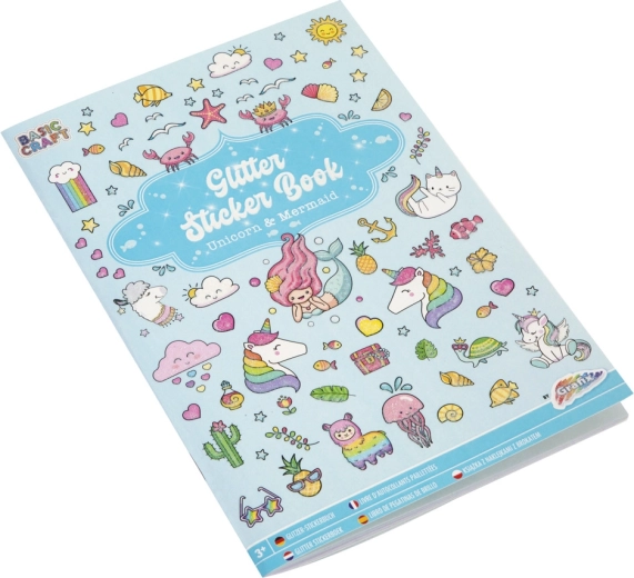 Kniha trblietavých samolepiek Jednorožec, Morská víla – A5 kniha obsahuje 8 listov s trblietavými samolepkami.