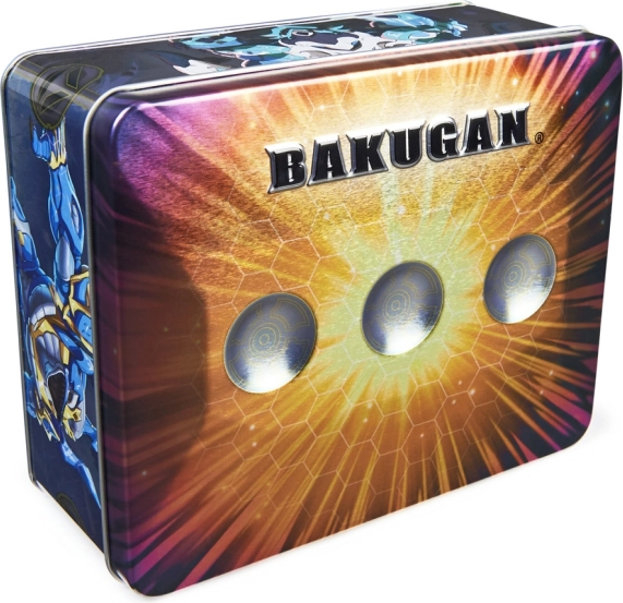 Štýlový plechový box v novom dizajne, ktorý pojme až 6 Bakuganov, 2 balíčky 40 kariet a 12 Baku-žetónov. Balenie obsahuje 1 plechový box s vekom, 1 exkluzívneho Bakugana, 1 tajomného Bakugana, 4 Baku-žetóny, 2 karty charakteru, 2 Gate karty. Vhodné od 6 rokov.