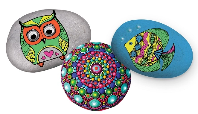 Jednoduché použitie ocenia začiatočníci aj pokročilí. Hladké kamene sa dobre maľujú, štetcom vytvoríte plochy a drevenou špajdľou presné bodky, línie a mandalové vzory. Hotové kamienky poslúžia ako originálne dekorácie, talizmany alebo darčeky.