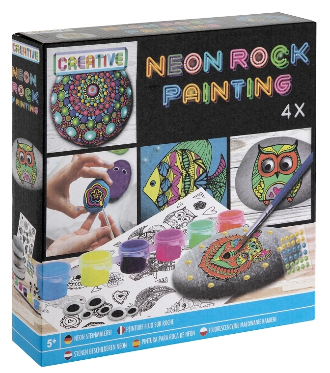 Objavte zábavu a kreativitu s touto neónovou sadou na maľovanie kamienkov. Balenie obsahuje 4 hladké kamene, 6 neónových akrylových farieb, štetec, drevenú špajdľu, transferové samolepky a oči s nalepovacími korálikmi pre efektné dekorovanie. Ideálna tvorivá aktivita pre deti od 8 rokov aj dospelých.