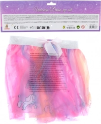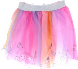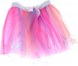Sukňa je vyrobená z niekoľkých vrstiev farebného tylu a je zdobená motívmi jednorožcov a mašličkami, čo ju robí ideálnou pre každodenné hravé nosenie.