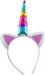 Čelenka je vybavená dúhovým rohom a bielymi uškami s ružovými akcentmi, čo dodáva kostýmu čaro a je perfektným doplnkom pre každú malú vílu.