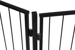 Praktická bezpečnostná bránka ku krbu chráni deti aj domáce zvieratá pred horúcim povrchom a otvoreným ohňom. Vďaka piatim segmentom na pántoch ju ľahko prispôsobíte priestoru, má jednoduchú montáž do steny, poistku proti náhodnému otvoreniu a je kompatibilná s väčšinou krbov. Robustná oceľová konštrukcia v čiernej farbe, celková šírka 304 cm a výška 74,5 cm poskytujú spoľahlivú ochranu v obývacom priestore.