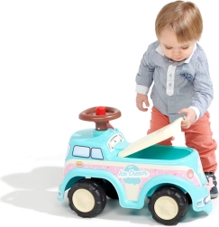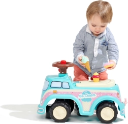 Toto odrážadlo v tvare zmrzlinárskeho auta sa pýši atraktívnym dizajnom, ktorý zaujme každé dieťa. Je vybavené volantom s klaksónom pre skvelú kontrolu a zábavu.