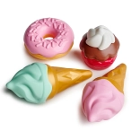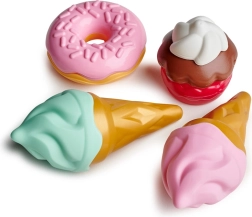 Súprava obsahuje dve zmrzliny, jeden cupcake a jeden donut, ktoré podporujú predstavivosť a simuláciu skutočných zmrzlinárskych výprav.