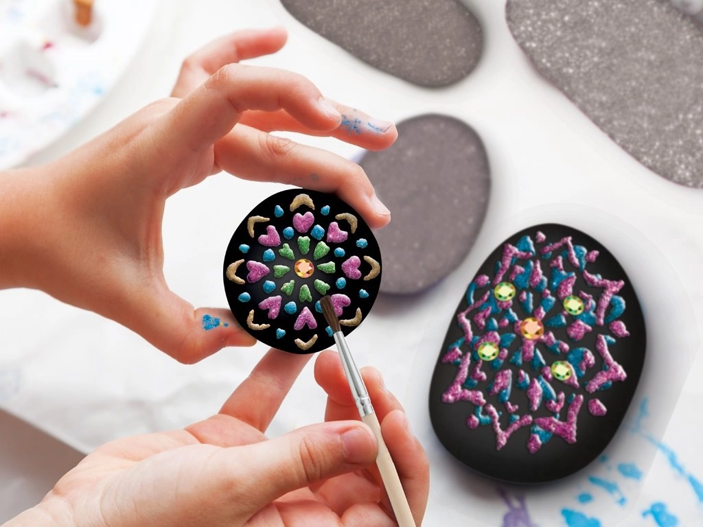 Maľovanie na kamienky podporuje sústredenie, kreativitu a jemnú motoriku – ideálna činnosť na pokojné popoludnie.