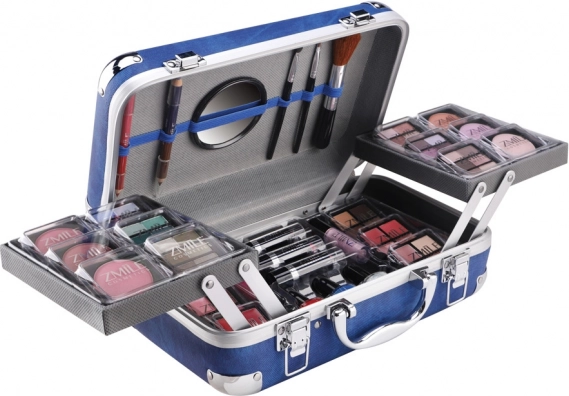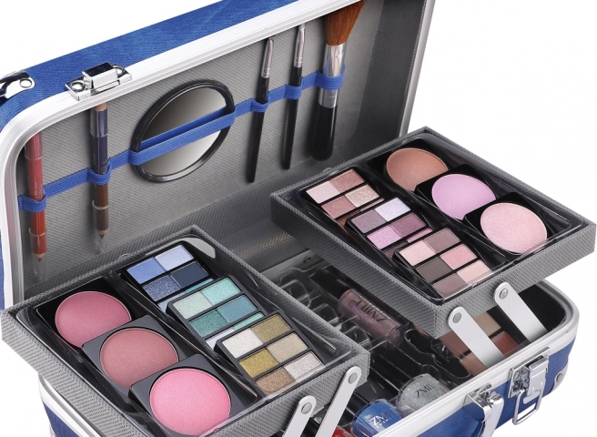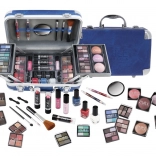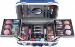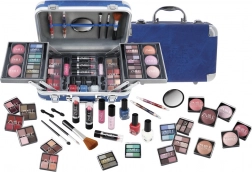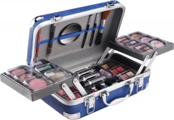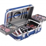 Kozmetický kufrík s hliníkovými rohmi Travel Blue s integrovaným zrkadielkom – celkom 84 ks príslušenstva.