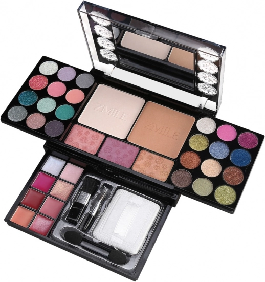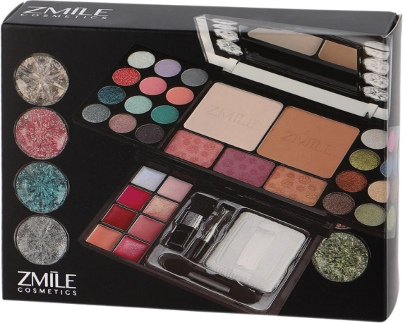 Univerzálna kozmetická paletka ZMILE Diamonds na každodenné aj večerné líčenie ponúka 16 očných tieňov, 8 krémových leskov na pery, 8 trblietavých krémov a 2 púdre. Praktické balenie s integrovaným zrkadielkom a aplikátormi/štetcom je ideálne na cesty, dermatologicky testované a spĺňa prísne normy EÚ.
