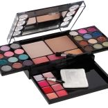 Kompletný set pre oči, pery aj pleť v elegantnej čiernej paletke so zrkadielkom a aplikátormi – ideálne na doma aj na cesty.