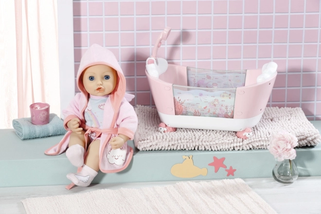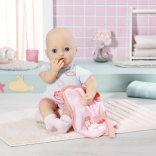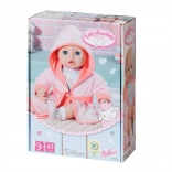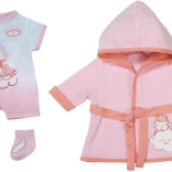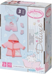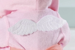 Nechajte svoju Baby Annabell zažiť čarovné chvíle s týmto štýlovým županom a pyžamkom. Župan je ozdobený krídelkami, ktoré z neho robia nielen módny, ale aj pohodlný doplnok pre hru. Pod županom nosí bábika krátky overal s potlačou ovečky užívajúci si dúhovú sprchu. Aby boli nožičky bábiky pekne v teple, súprava obsahuje taktiež ružové ponožky s obrázkami krídel.