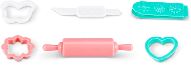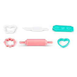 Súčasťou balenia je 30 praktických doplnkov, ako sú formičky na pečenie, valček a rôzne dekorácie, ktoré podporujú rozvoj jemnej motoriky, predstavivosti a rolových hier. Set je skvelým darčekom pre deti, ktoré rady tvoria a hrajú sa na pekárku.