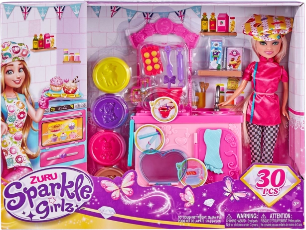 Herná sada Sparkle Girlz pekárka je ideálna pre malé cukrárky a pekárov, ktorí milujú kuchárske dobrodružstvá. Bábika je pripravená na pečenie a vďaka bohatej sade príslušenstva môžu deti napodobňovať skutočné kuchynské činnosti – od vaľkania cesta až po zdobenie výtvorov.