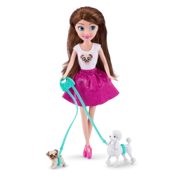 Užite si hodiny zábavy s bábikou Sparkle Girlz s výškou 28 cm, ktorá prichádza s 2 roztomilými psíkmi a 2 vôdzkami na spoločné prechádzky a hranie.
