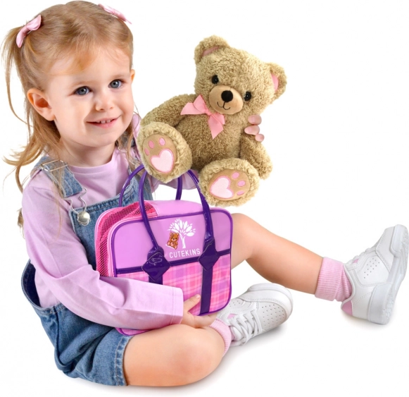 Pripravte sa na hodiny nežného mojkania a fantazijných hier. Tento plyšový medvedík s kabelkou CUTEKINS kombinuje roztomilý vzhľad s praktickým prevedením – medvedíka možno bezpečne uložiť do tašky a vziať si ho všade so sebou. Mäkučký materiál, jemné detaily s mašličkou a srdiečkami a ľahká konštrukcia z neho robia skvelú voľbu pre deti od 2 rokov.