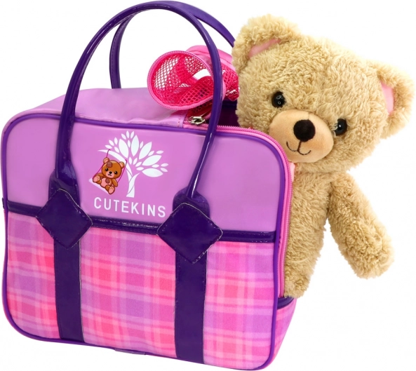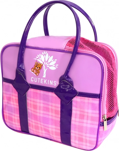 Kabelka s ružovo‑fialovým károvaným vzorom a zipsom je ideálna na prenášanie plyšáka aj drobných pokladov. Vďaka pevným uškám sa dieťaťu dobre drží. Štýl CUTEKINS zaujme farbami aj hravým motívom medvedíka, takže poteší pri každom nosení.