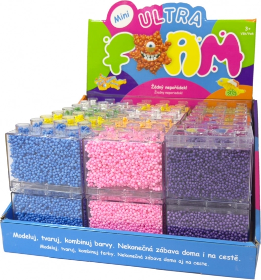Ultra Foam mini je revolučná hmota pre kreatívne tvorenie, ktorá sa nikdy nevysuší a nelepí. Deti môžu modelovať, tvarovať a voľne kombinovať farby podľa svojej fantázie. Tento produkt je ideálny pre rozvoj jemnej motoriky a kreativity vašich ratolestí. Je bezpečný, netoxický a jednoducho skladovateľný vďaka praktickým obalom, ktoré pripomínajú stavebné kocky.